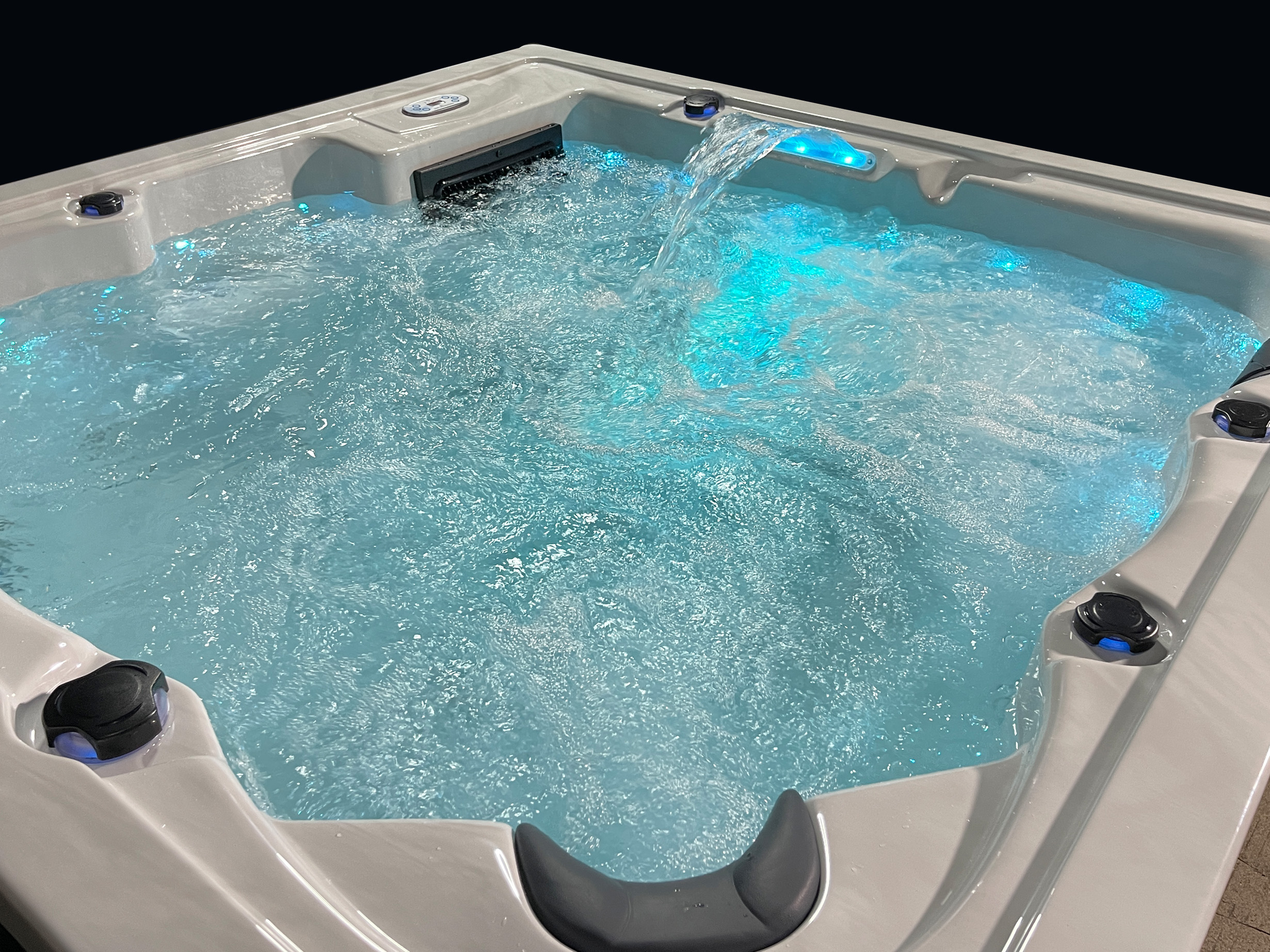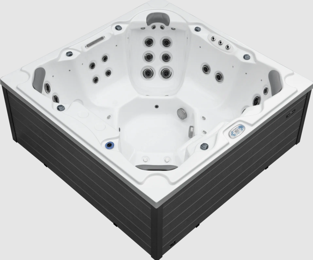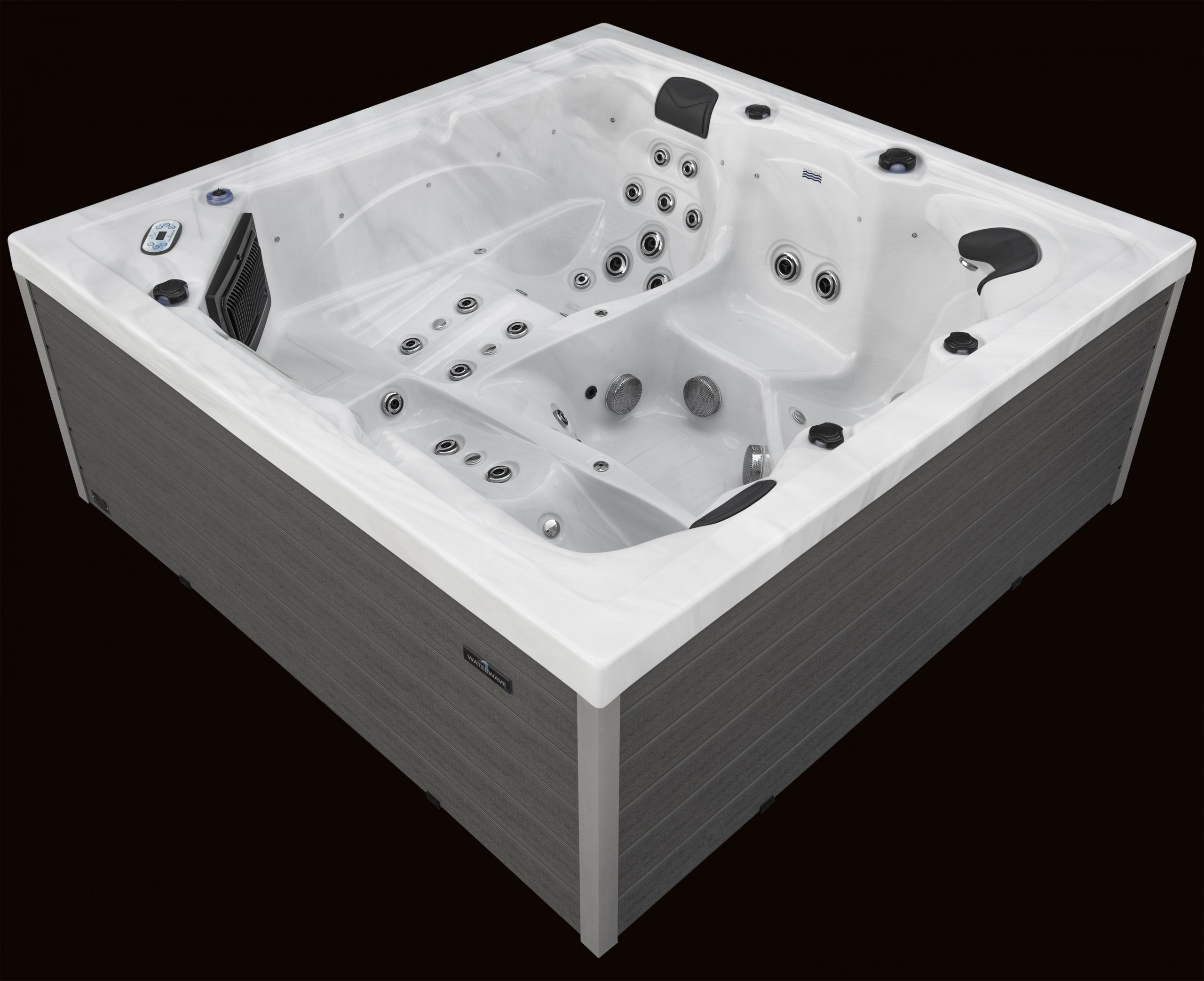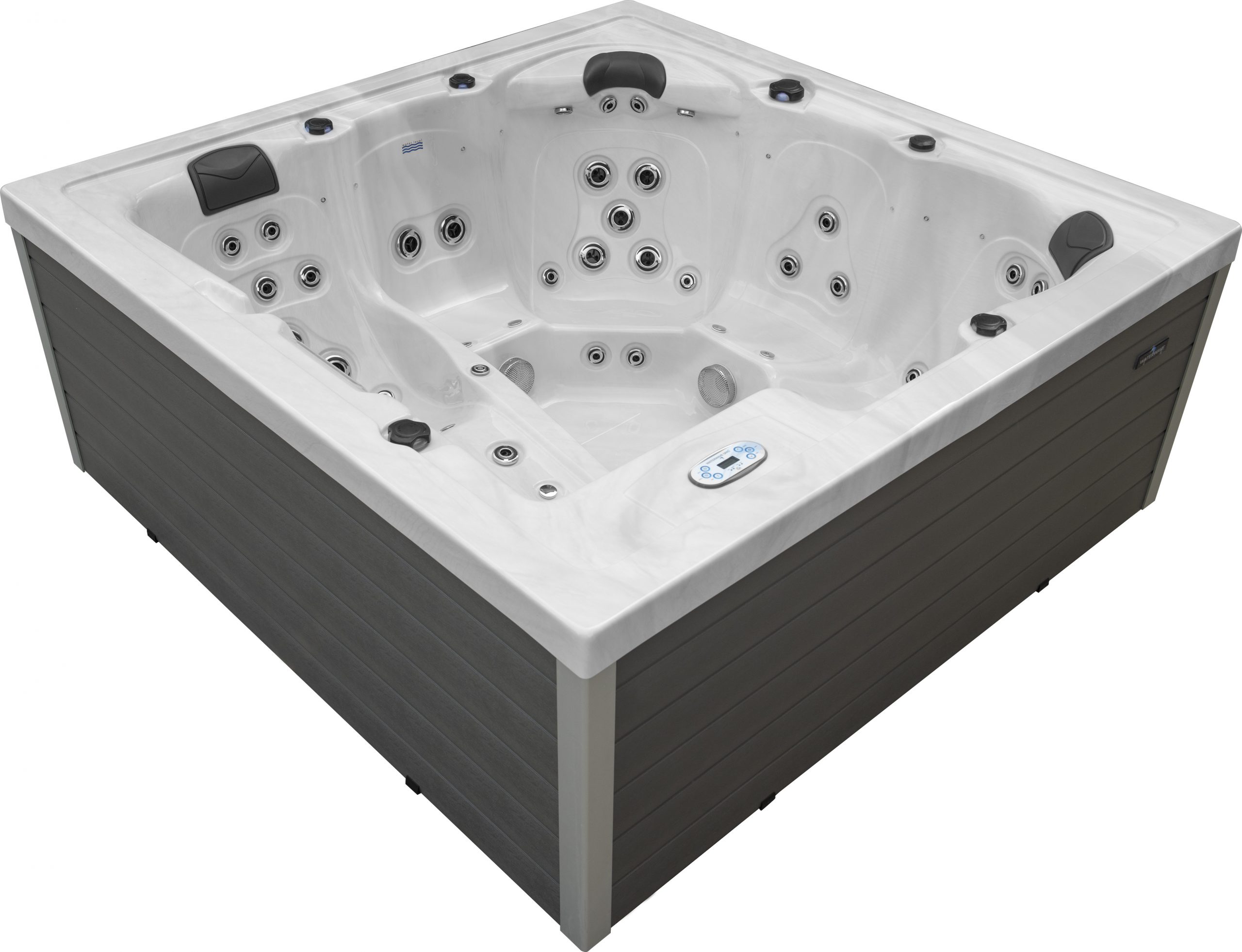 Entdecken Sie den Whirlpool Victoria. 6 Sitzplätze, 38 Massagedüsen. Modernes Design trifft auf hochwertige Verarbeitung. Der ideale Luxus für jede Wellness-Oase.