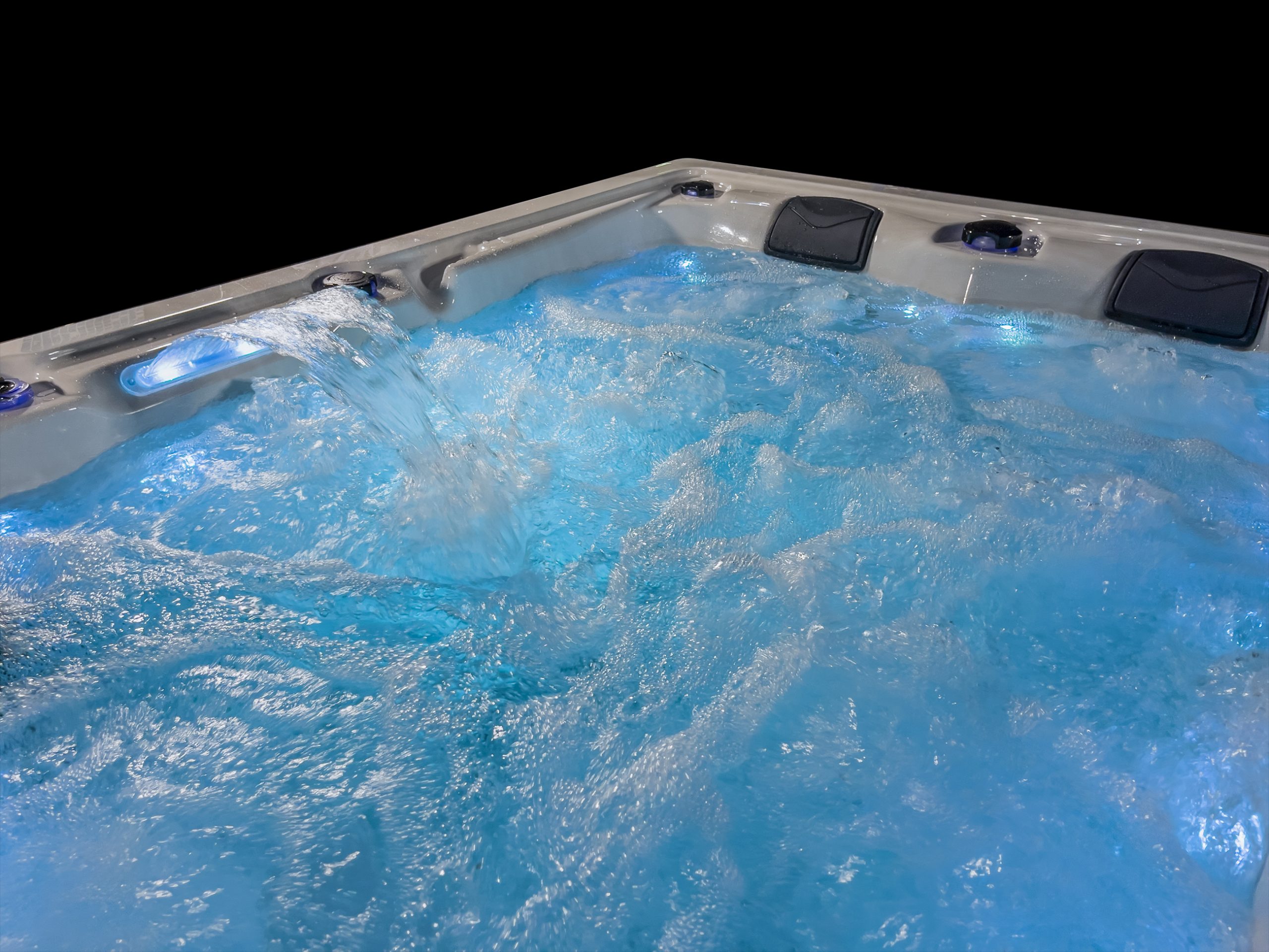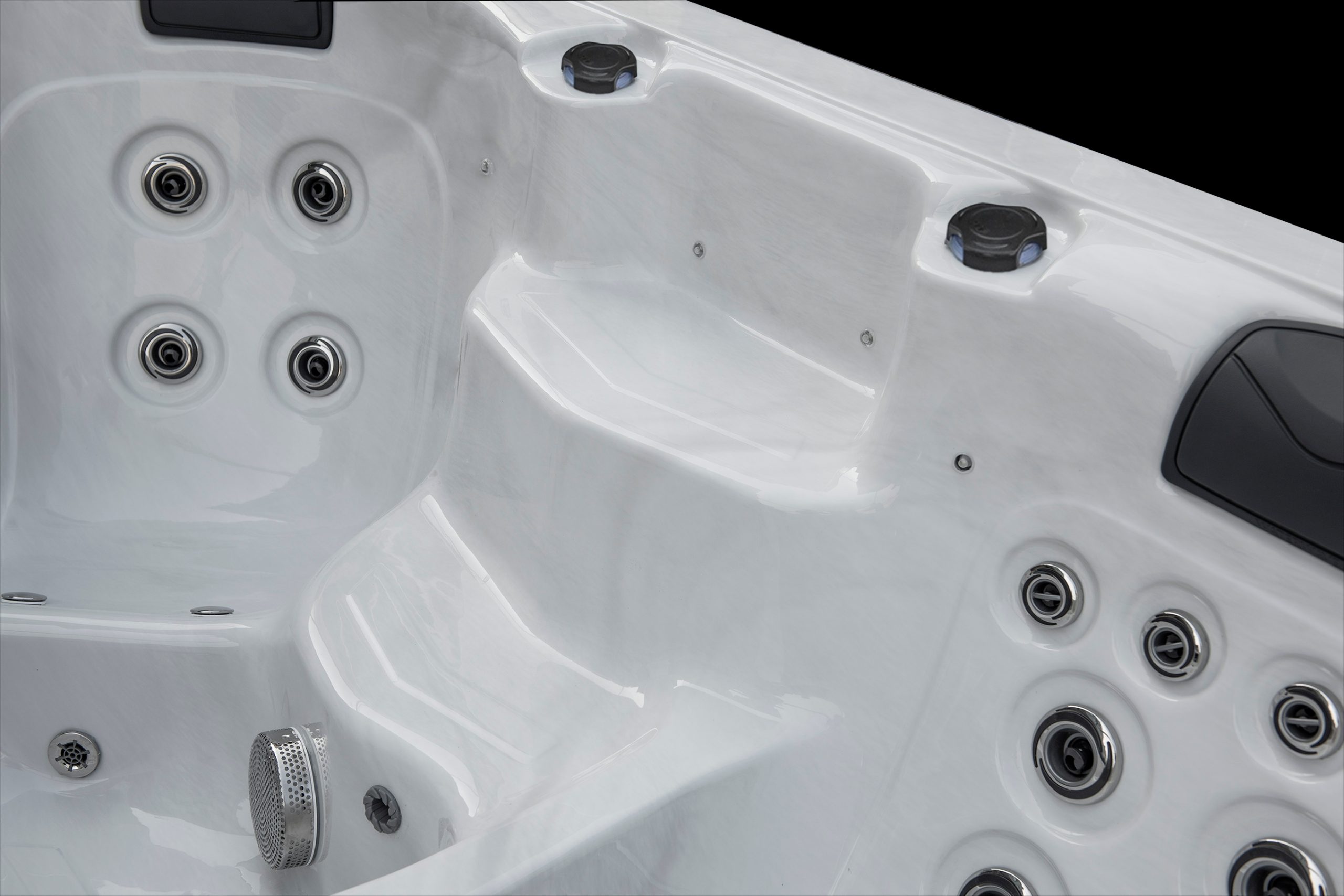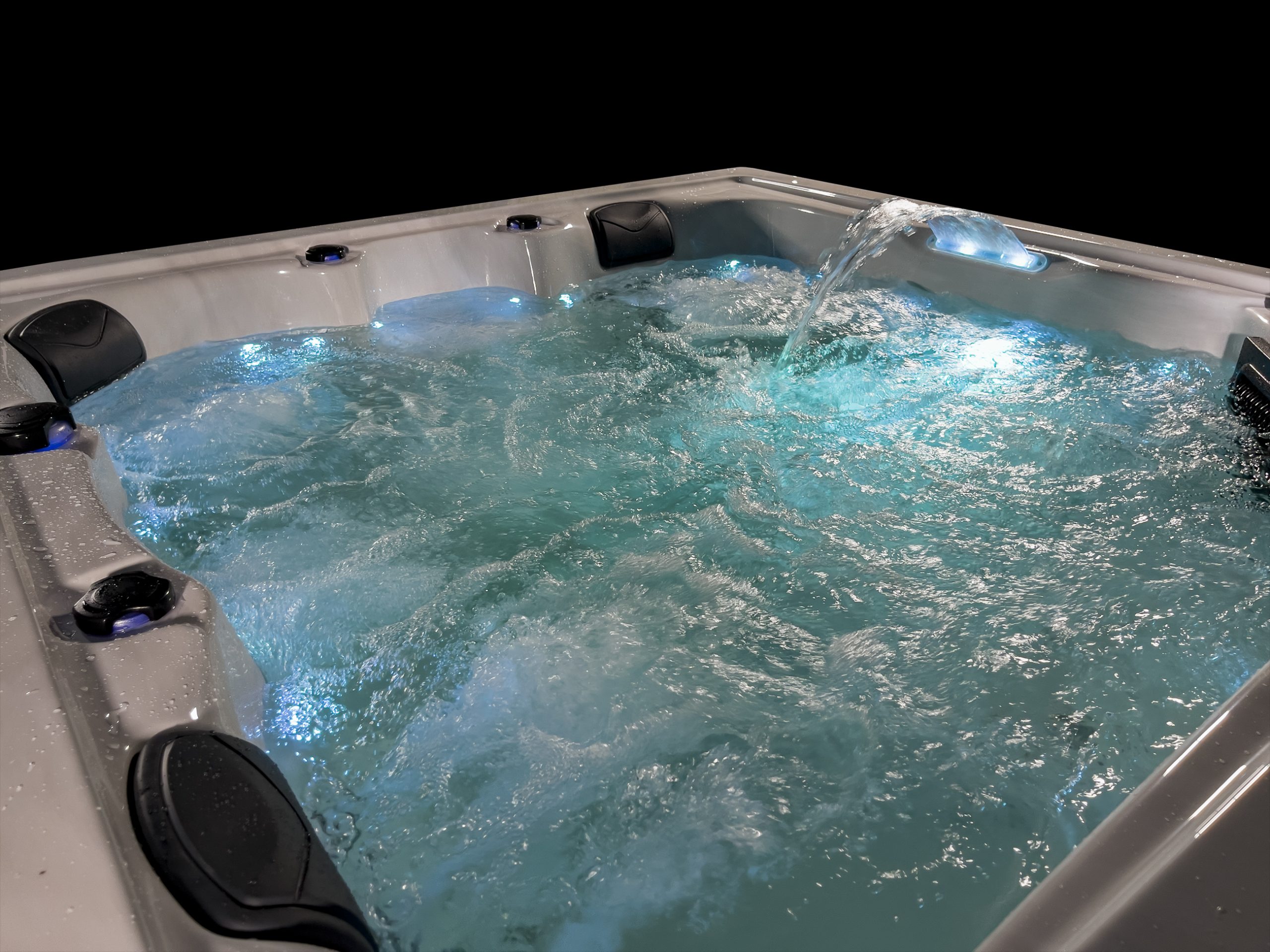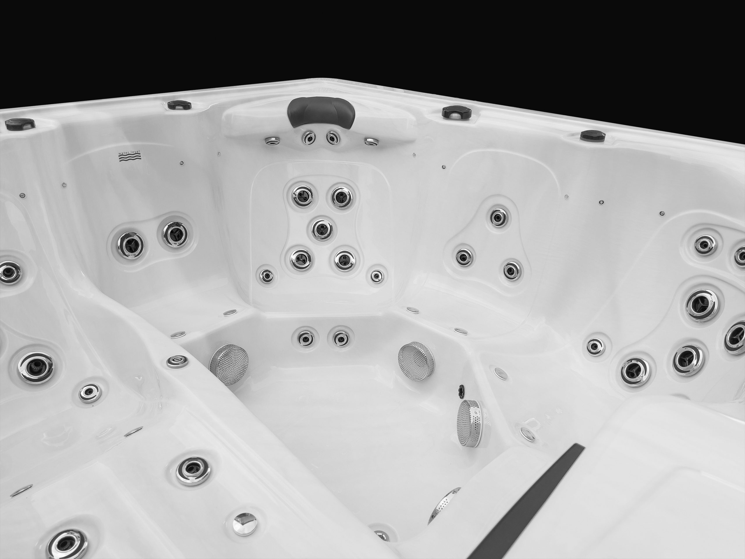 Entdecken Sie den Whirlpool Victoria. 6 Sitzplätze, 38 Massagedüsen. Modernes Design trifft auf hochwertige Verarbeitung. Der ideale Luxus für jede Wellness-Oase.