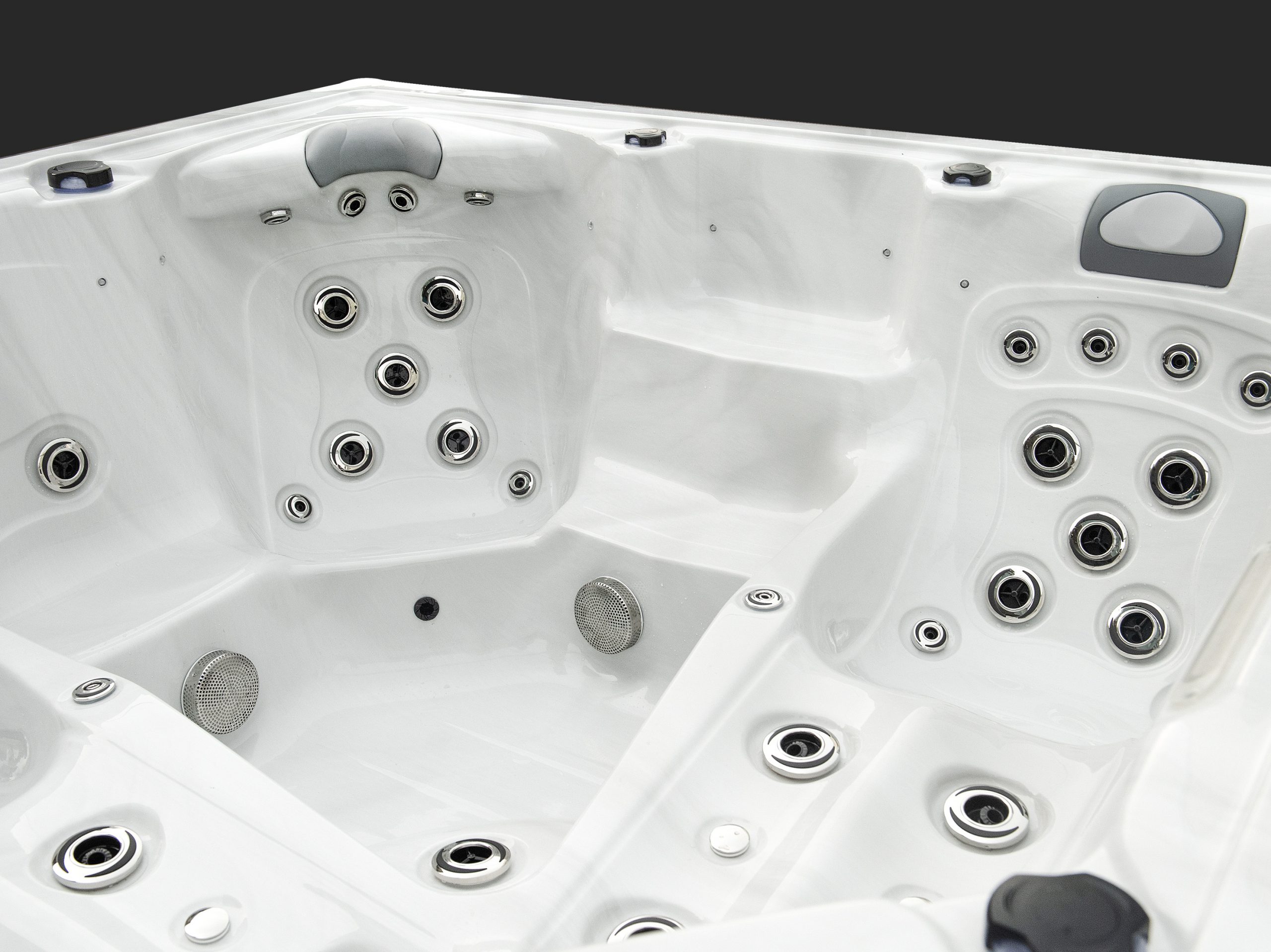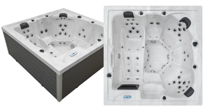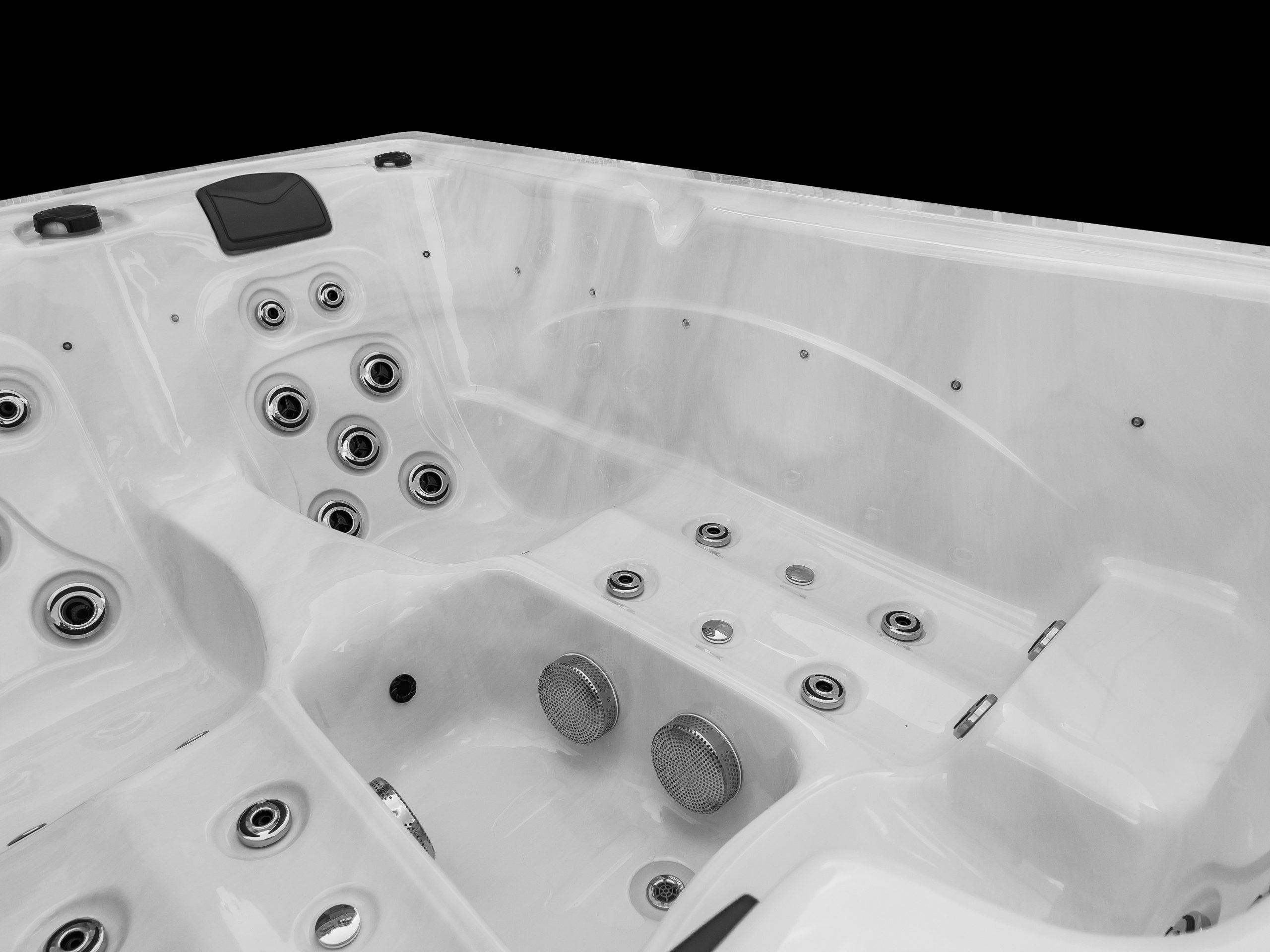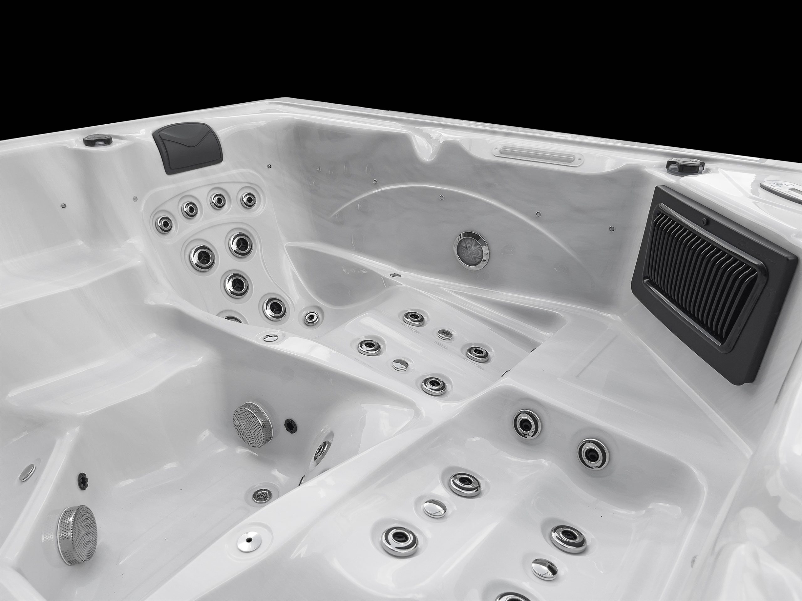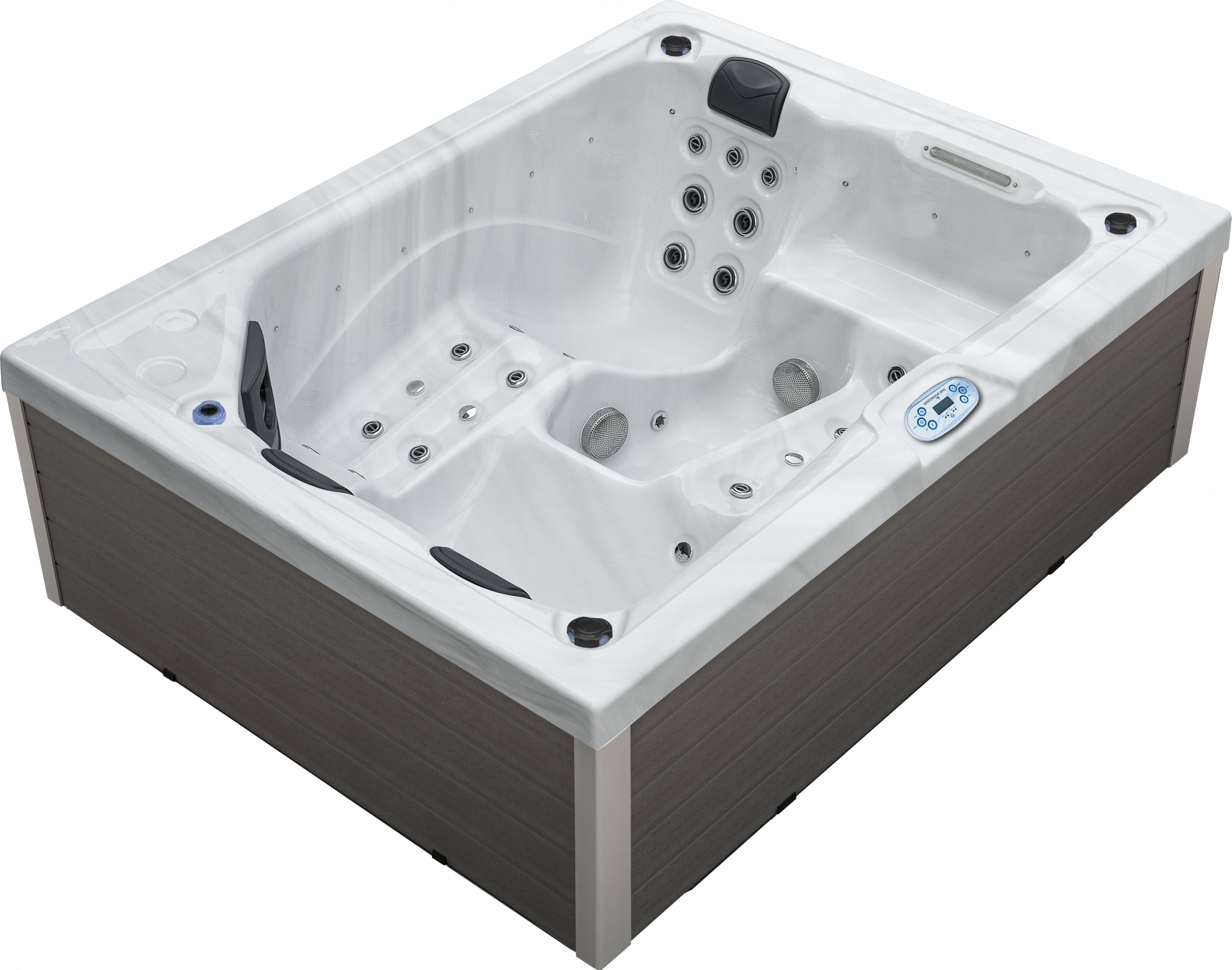 Entdecken Sie den Whirlpool Victoria. 6 Sitzplätze, 38 Massagedüsen. Modernes Design trifft auf hochwertige Verarbeitung. Der ideale Luxus für jede Wellness-Oase.