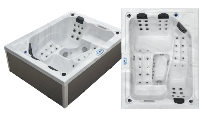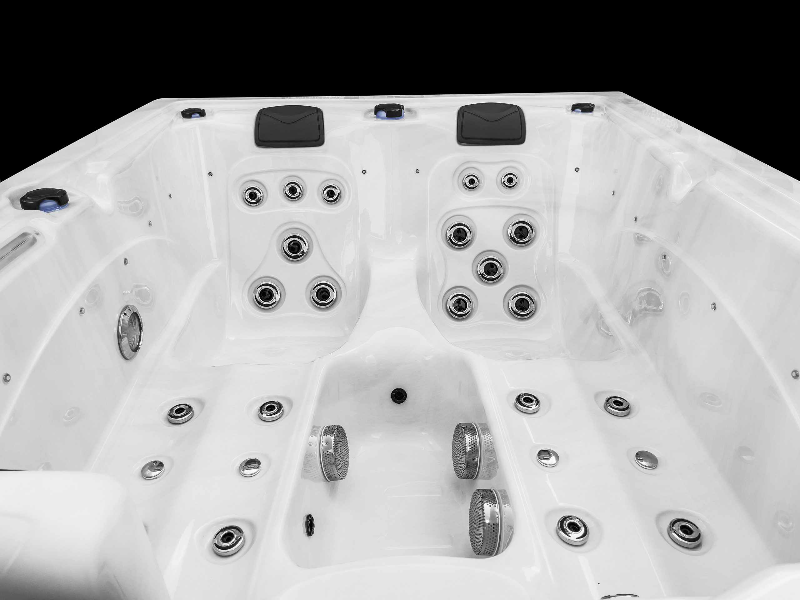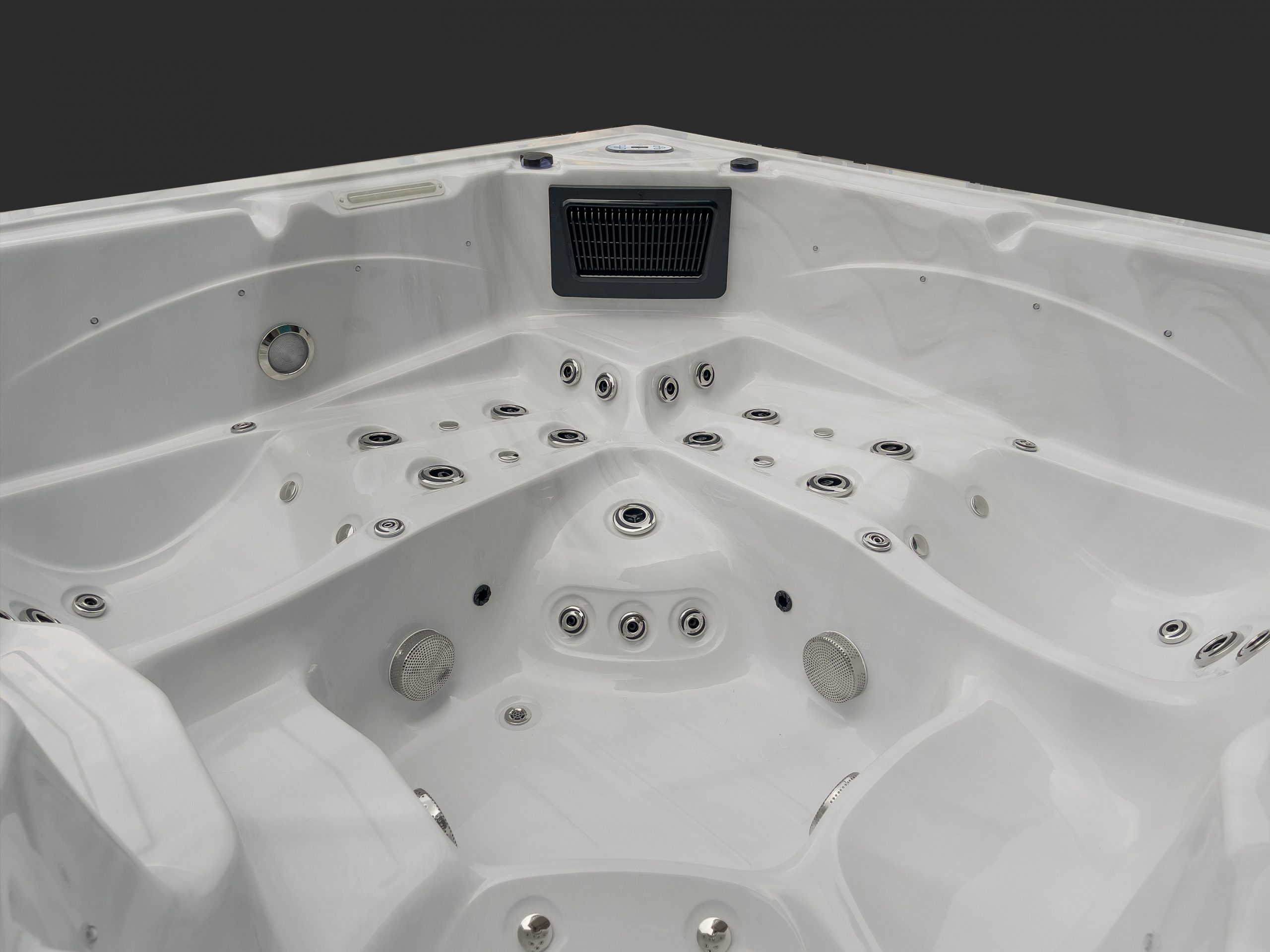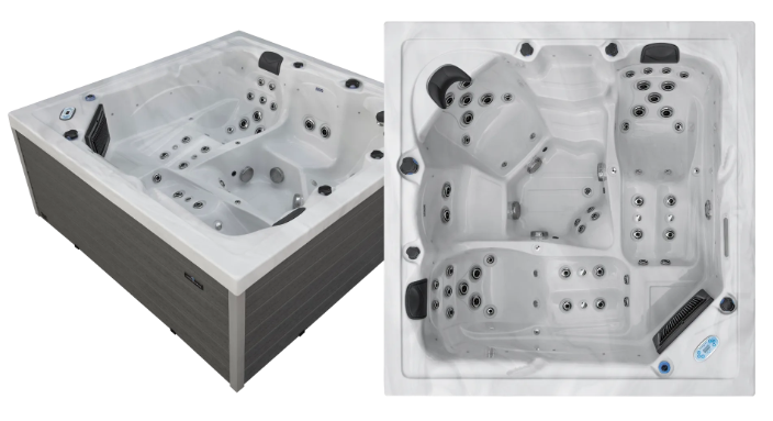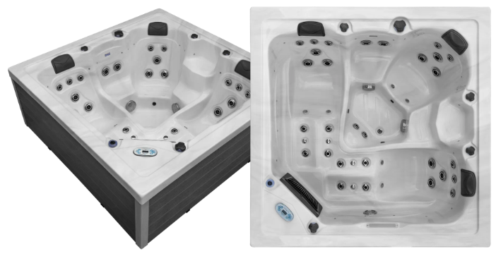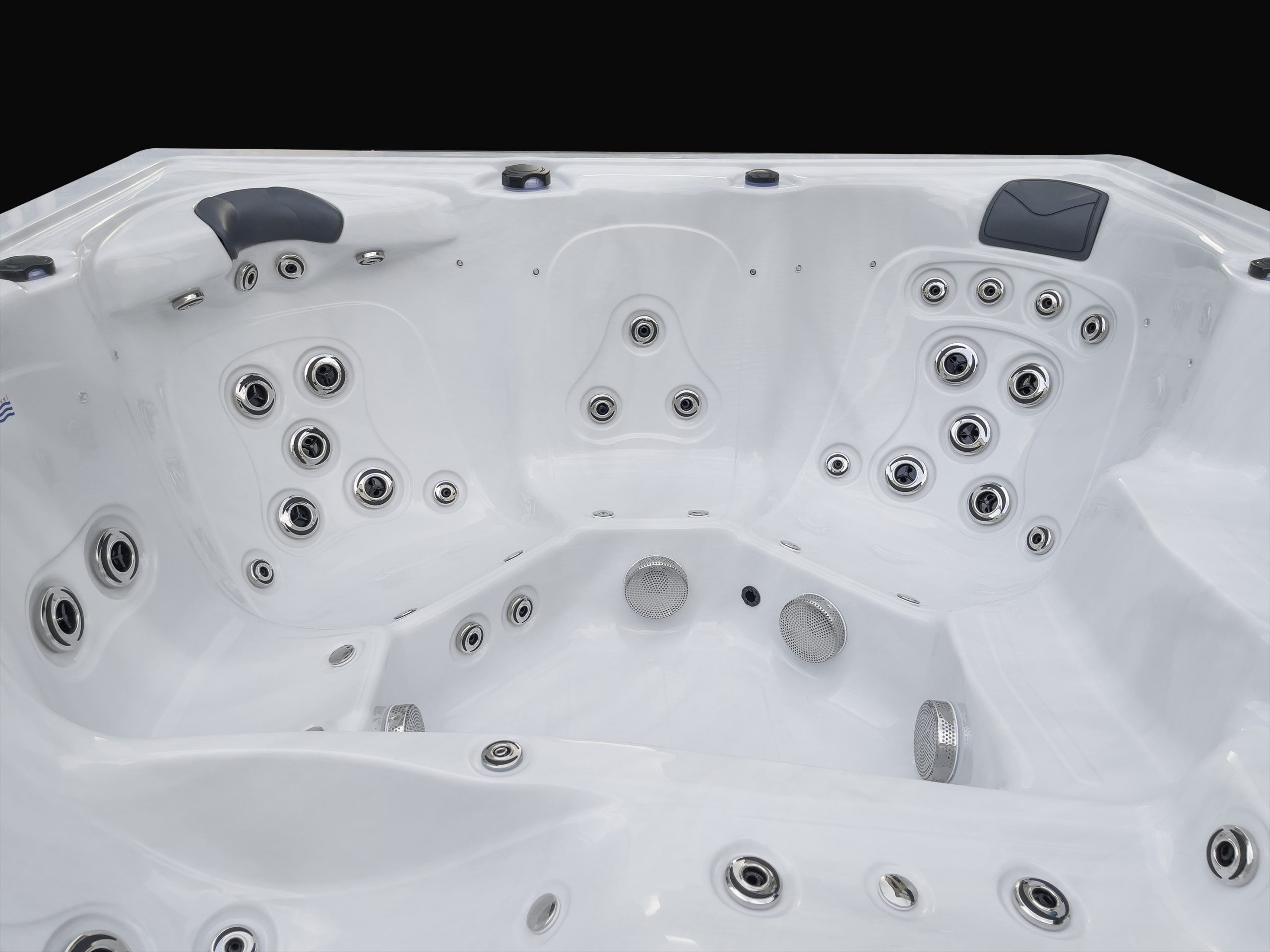 Entdecken Sie den Whirlpool Victoria. 6 Sitzplätze, 38 Massagedüsen. Modernes Design trifft auf hochwertige Verarbeitung. Der ideale Luxus für jede Wellness-Oase.